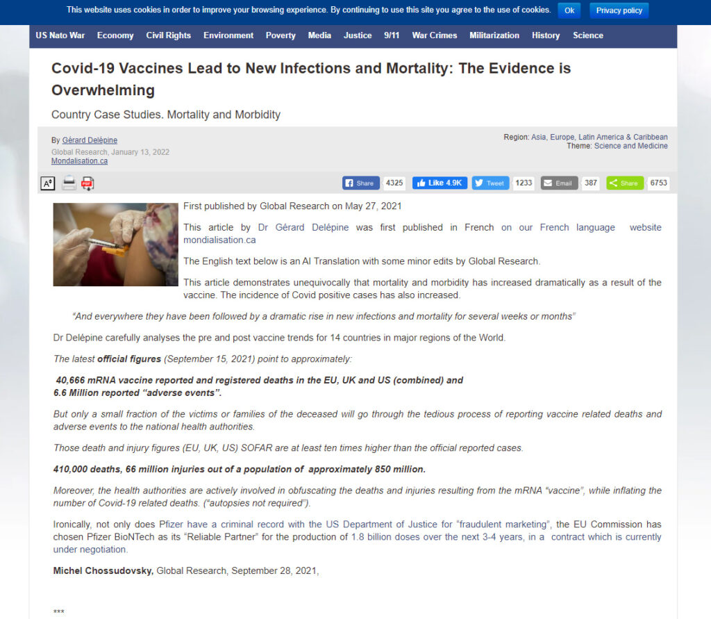 Pierwszoligowe portale (w Polsce: WP / Interia / Onet) zmniejszają szansę pojawienia się dezinformacji, z kolei strony należące do osób powiązanych z Rosją lub realizujące rosyjskie interesy geopolityczne (wRealu24, BanBye.pl, kresy.pl, prawica.net). Trzeba przy tym zrozumieć że w interesie Rosji jest to, aby pandemia trwała jak najdłużej – co osłabi gospodarczo zachód – stąd bardzo szeroko zakrojone działania szerzące treści antyszczepionkowe oraz kreowanie i podsycanie teorii spiskowych.